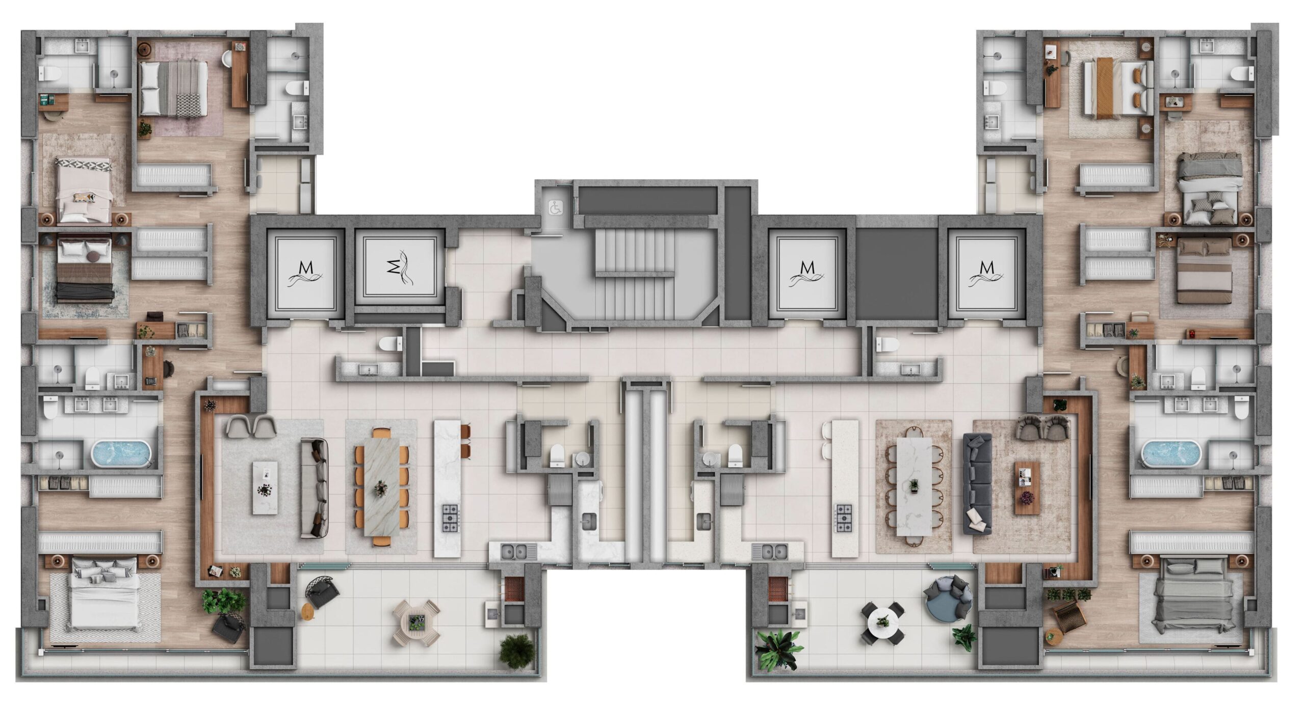 • 4 Suítes sendo uma master com closet e banheira de imersão